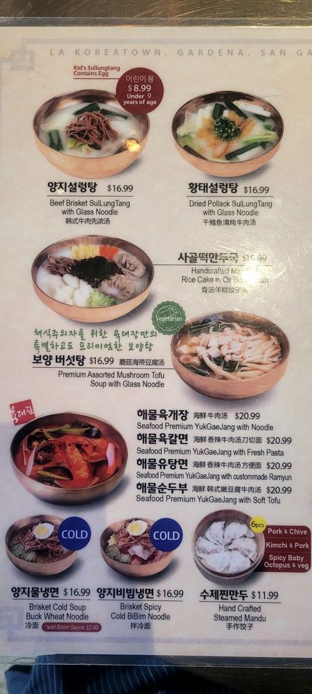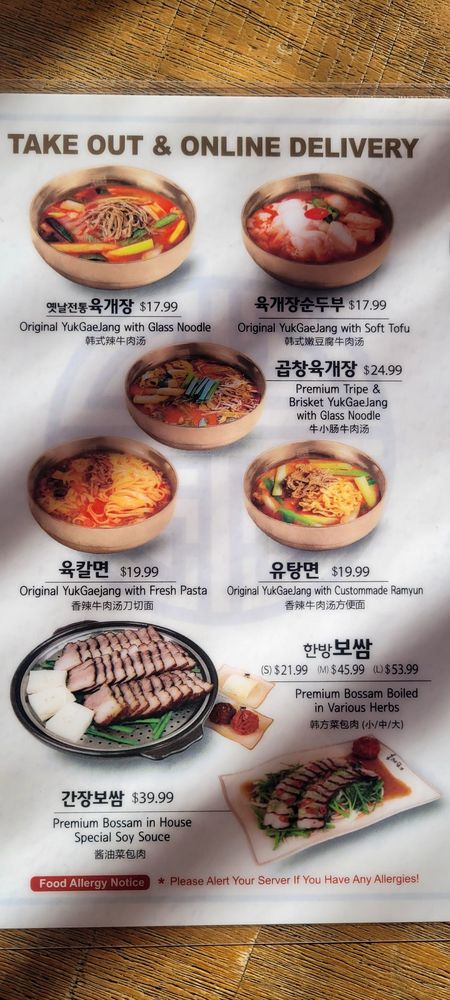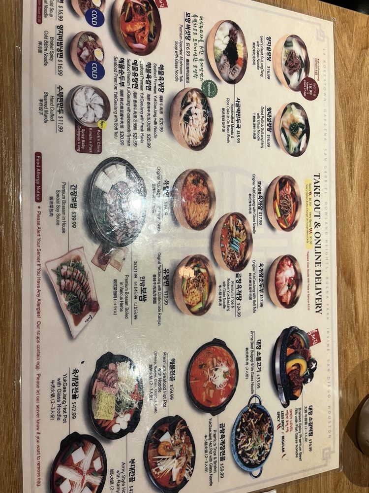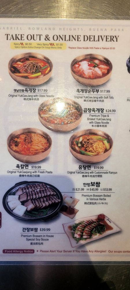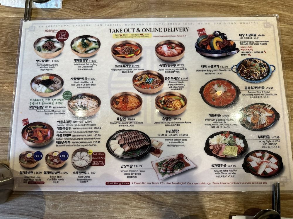 Yuk Dae Jang offers a diverse menu with unique Korean dishes, such as spicy beef noodles (yukgaejang) and handcrafted mandu in ox bone broth. Customers rave about the flavorful pork belly and juicy beef in their dishes. The customizable dining experience and attentive service make every visit a delight. The restaurant's cozy atmosphere and complimentary offerings like kimchi and lunch bags enhance the overall dining experience. With a focus on quality ingredients and hearty portions, Yuk Dae Jang consistently impresses guests with its authentic Korean flavors. Don't miss out on their specialty dishes and warm soups, perfect for any occasion. The attention to detail in presentation and taste truly sets Yuk Dae Jang apart in the LA dining scene.